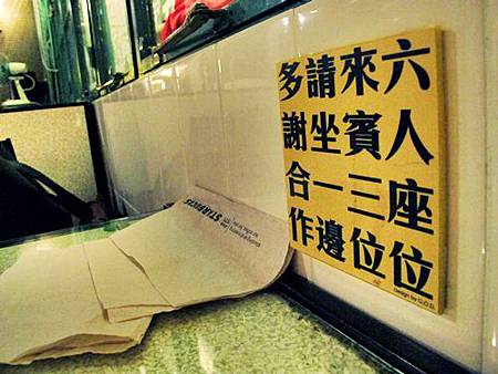 就是那很愛強迫客人擠坐一排的指示,為的是要符合香港人的快節奏與搭桌文化。
